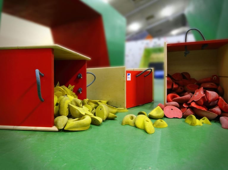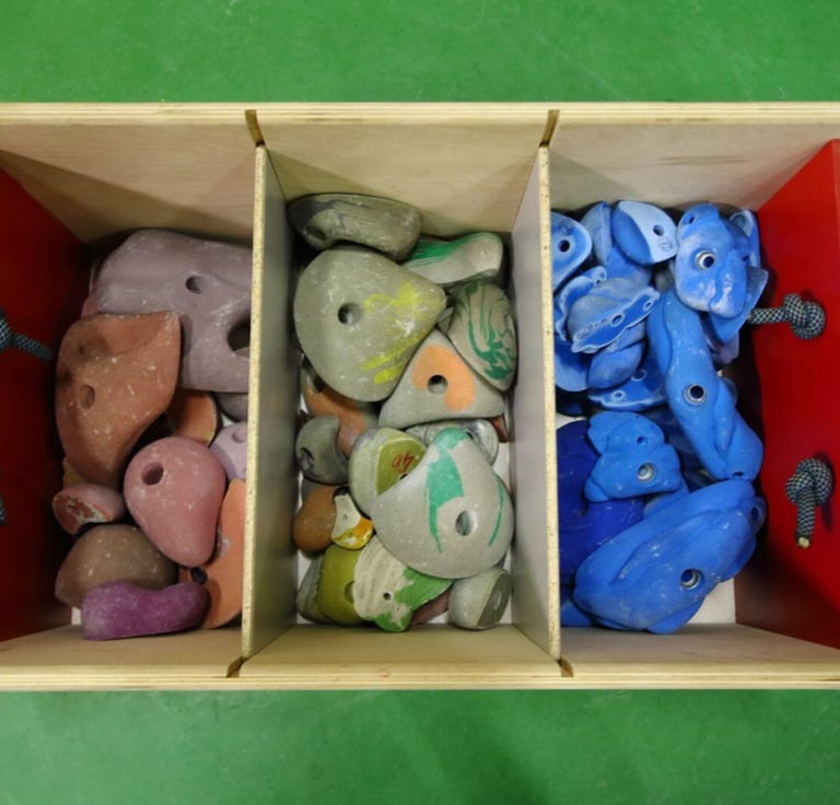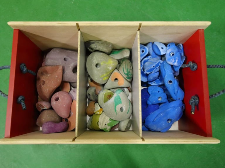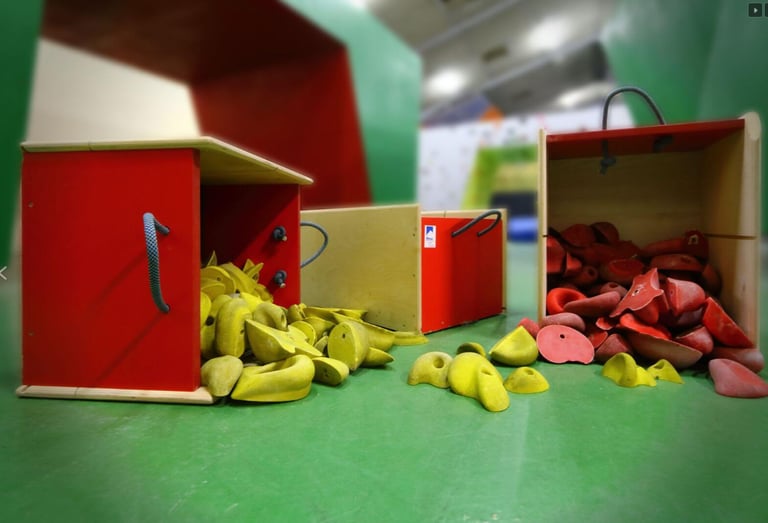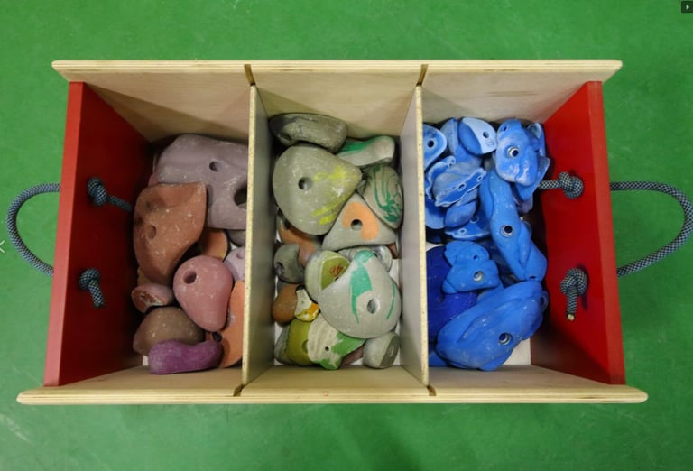 Fabrication de caisses de stockage de prises d’escalade. Visible à AUBIN – 64.