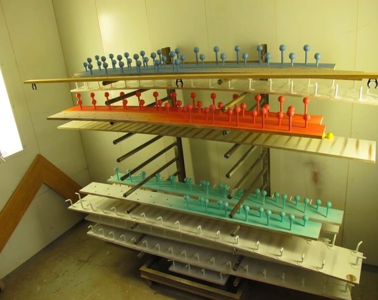 Réalisation de 180 patères réalisées en bois et métal pour une école maternelle.