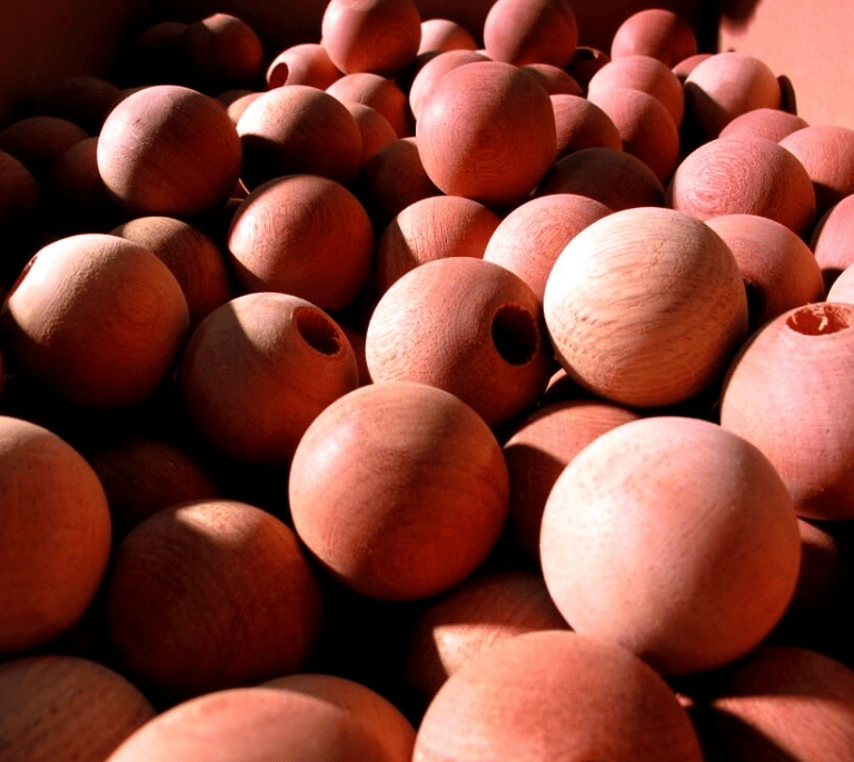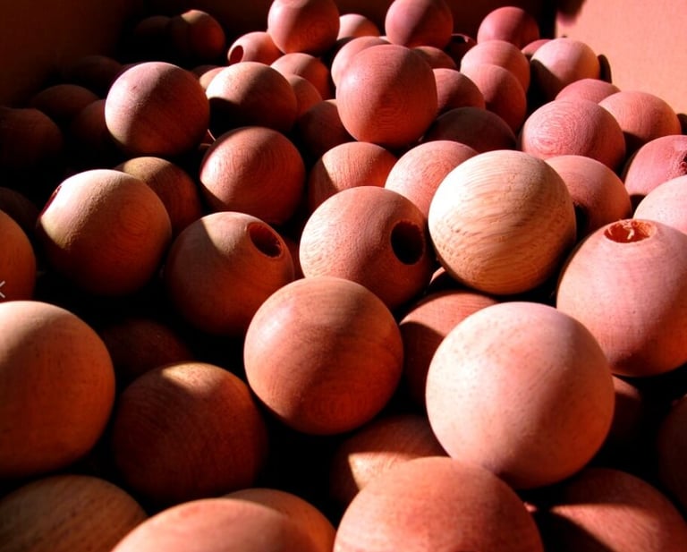 Boules en bois laqué, Support métal – Ensemble fixé sur support PIN.
