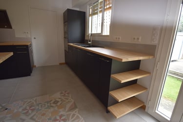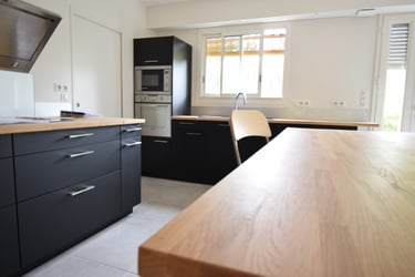 Nous privilégions des essences locales (chêne, hêtre, frêne, noyer, etc.) et des finitions naturelles.